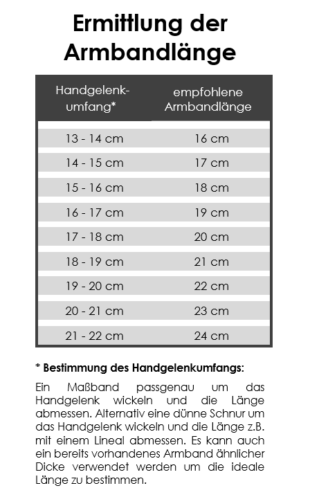 - Hinweis zur Armband-Länge: siehe Tabelle